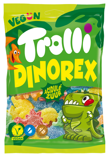 Les Dino Rex appartiennent aux membres sauvages de notre grande famille. Avec leur texture fondante, leur goût acidulé et fruité, ils sont devenus 100% populaires ! Des géants aux saveurs tendres : Fraise-framboise, citron-citron vert, citron, orange, framboise.